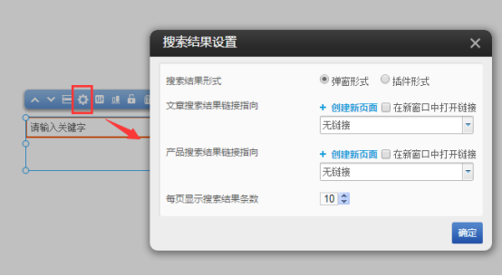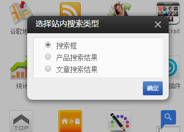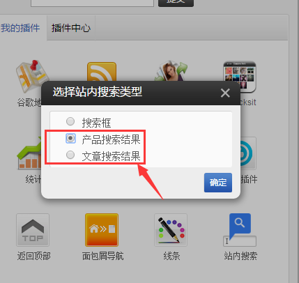 ①.添加站內(nèi)搜索插件,選擇搜索框,點(diǎn)擊確定。