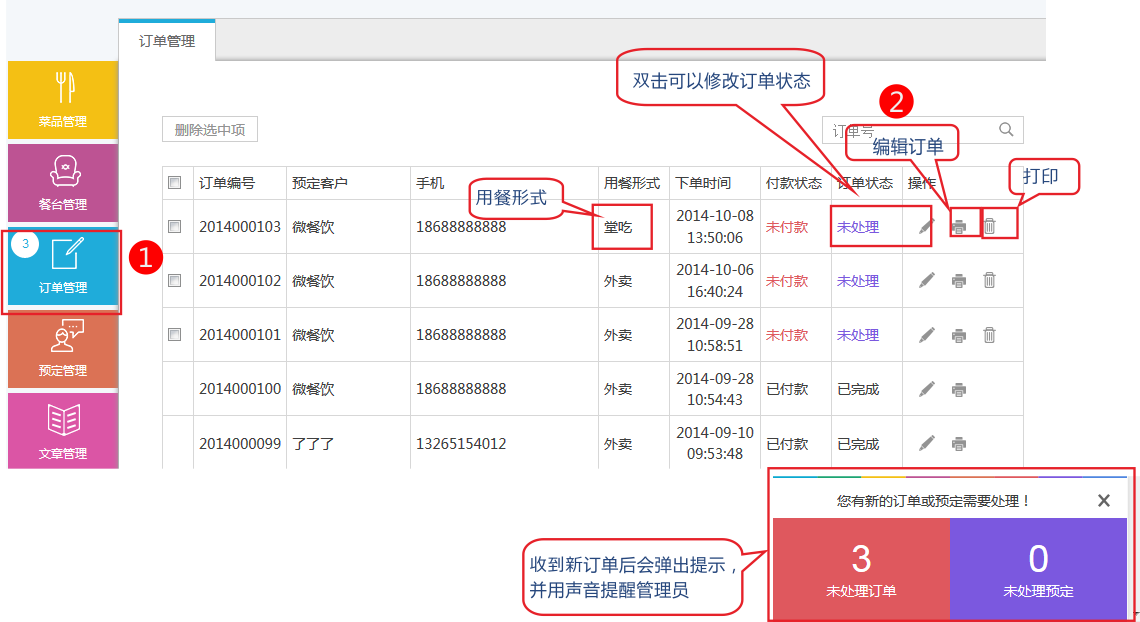 接下來(lái),我們從一個(gè)外賣訂單的生成到完成來(lái)說(shuō)明"堂吃訂單"的處理流程
