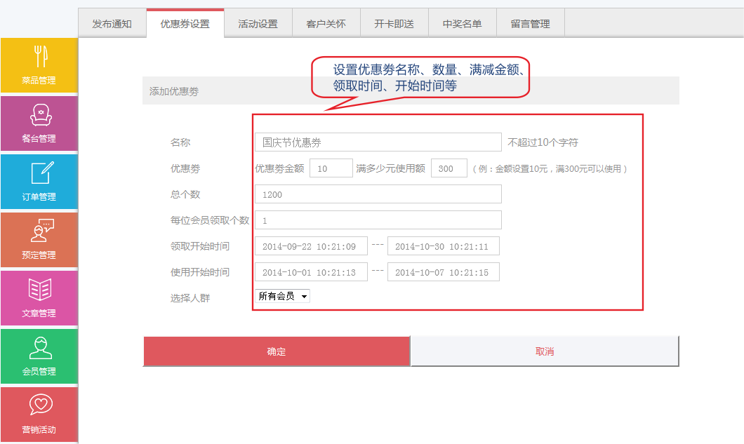 1.依次點擊營銷活動-》優(yōu)惠劵設置-》添加優(yōu)惠劵