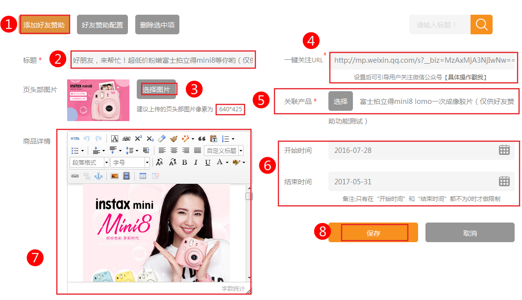 ①點擊“申請好友贊助”,分享朋友圈/小伙伴,呼朋喚友來幫忙!