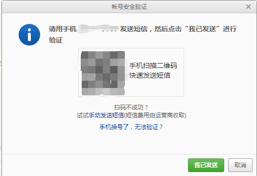 5.打開如下圖界面,使用手機(jī)發(fā)送驗(yàn)證短信,然后點(diǎn)擊我已發(fā)送按鈕
