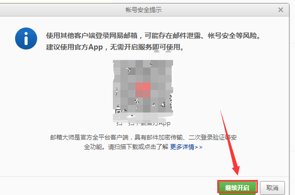 4.彈出如下圖界面,點(diǎn)擊繼續(xù)開啟按鈕