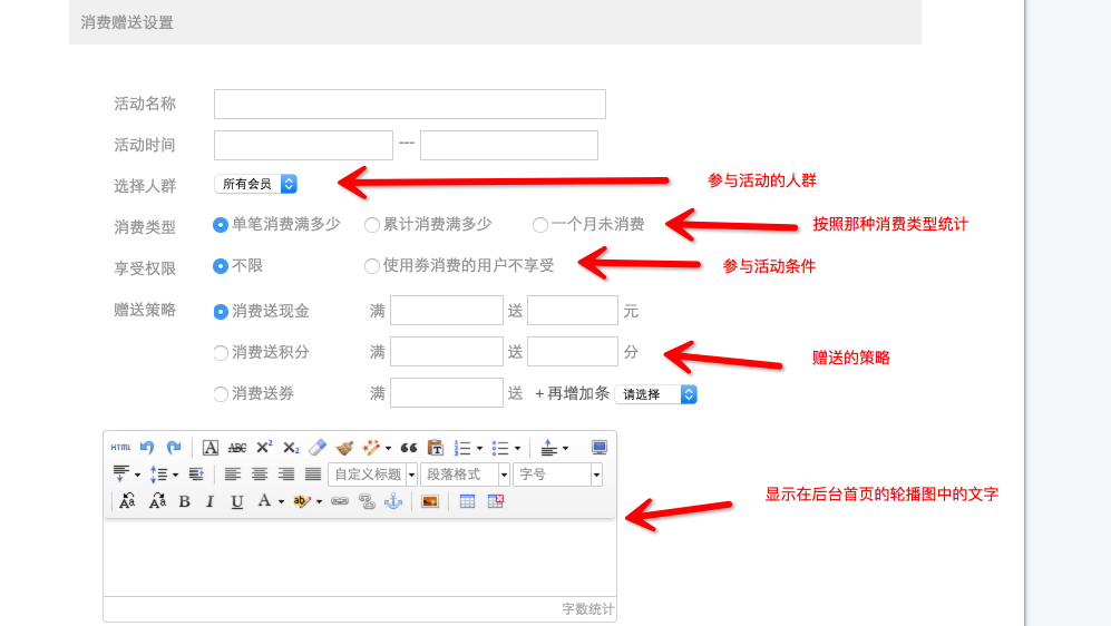 主要包括推薦贈送,充值贈送和消費贈送