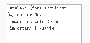 *{font-family:宋體,CourierNew!important;color:blue!important;}注意前后加上sytle標(biāo)簽如圖強(qiáng)制全局字體及顏色,大多數(shù)新版瀏覽器都應(yīng)該支持的!放CSS最前面就OK可以用高級(jí)代碼插件位置選擇-》位置選擇head之后