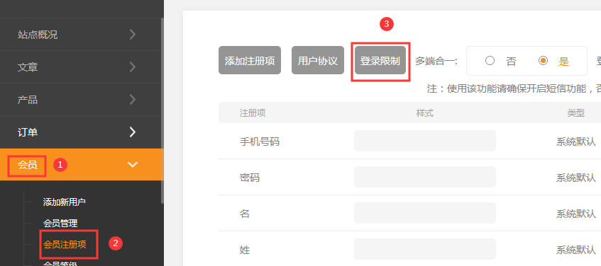 觸發(fā)短信-開啟找回密碼使用此功能前需要先配置短信發(fā)送設(shè)置在后臺(tái)設(shè)置短信模板->開啟找回密碼注意:要使用短信找回、會(huì)員主字段需要設(shè)置為手機(jī)