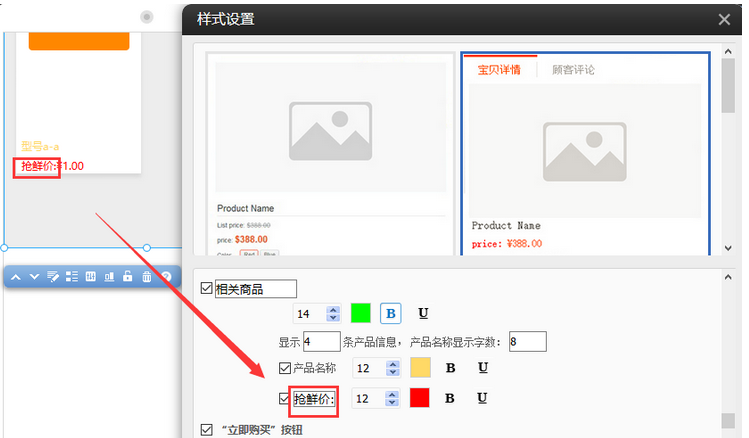 pc手機(jī)營銷版1.在建站產(chǎn)品詳情中相關(guān)商品的價(jià)格名稱可以修改了。如圖所示: