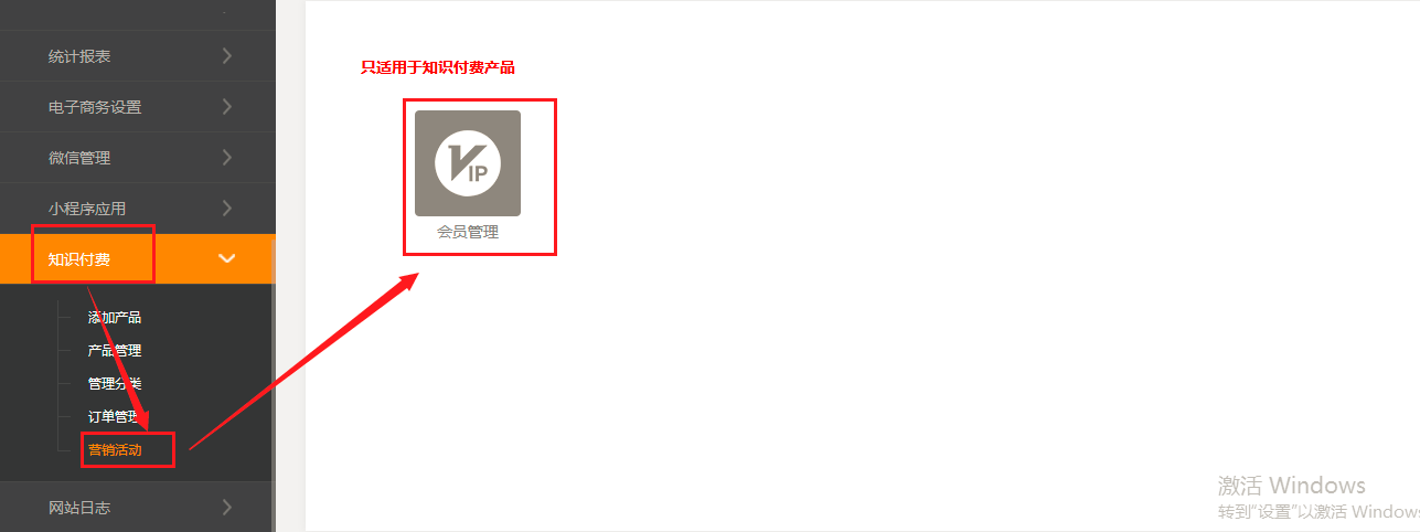 適用版本手機(jī)營銷版pc營銷版注意(小程序不支持此功能,并且不支持營銷功能,如優(yōu)惠劵,積分)一、功能介紹通過購買知識(shí)付費(fèi)會(huì)員,可以免費(fèi)觀看該會(huì)員權(quán)益下的知識(shí)付費(fèi)產(chǎn)品。二、后臺(tái)操作步驟1、登錄網(wǎng)站后臺(tái)。從知識(shí)付費(fèi)->營銷活動(dòng)->會(huì)員管理->進(jìn)入會(huì)員編輯頁面2、填寫基本信息1.填寫會(huì)員名稱,會(huì)員使用期限與價(jià)格,知識(shí)付費(fèi)產(chǎn)品范圍,會(huì)員權(quán)益說明。(1月=31天,1年=366天)說明:會(huì)員權(quán)限范圍后臺(tái)可以實(shí)時(shí)切換,切換后前臺(tái)會(huì)員權(quán)益變?yōu)樽钚轮R(shí)會(huì)員權(quán)益,(會(huì)員多次購買后,會(huì)員期限時(shí)間累加)3、營銷信息查看1.查看知識(shí)付費(fèi)訂