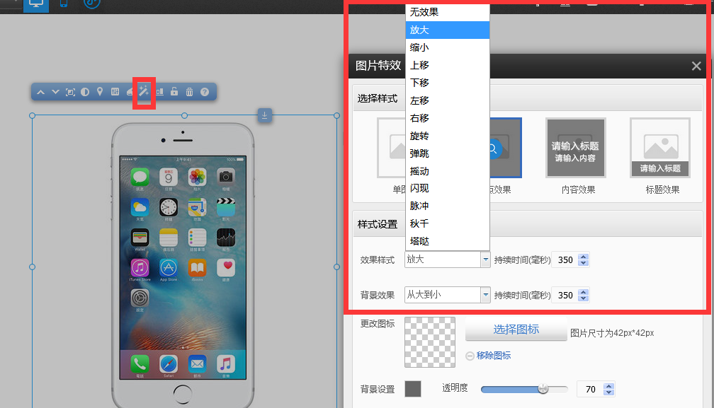 選中圖片然后選擇圖片特效-》選擇放大即可。