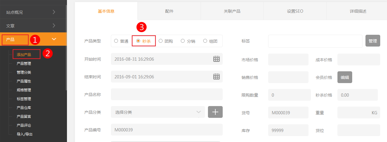 Pc版插件(適用版本Pc營銷版手機(jī)營銷版)本小節(jié)共包含5點(diǎn)。1、依次點(diǎn)擊產(chǎn)品-》添加產(chǎn)品-》產(chǎn)品類型選擇添加產(chǎn)品2、商品應(yīng)該包括那些內(nèi)容呢?可能最基本的應(yīng)該是以下幾點(diǎn):商品類別:一件商品必須屬于一個類別,這個便于管理所以可能添加分類往往是第一步的。商品名稱:一件商品當(dāng)然也是必須有這個商品的名稱商品圖片:只有精美的圖片,才能讓買家對你的商品產(chǎn)生足夠的興趣。商品價格:要出售商品,當(dāng)然也必須給這個商品指定一個價格。商品規(guī)格:是依據(jù)顧客的購買習(xí)慣而獨(dú)立出來的一種商品的特殊屬性;商品規(guī)格不同,可能會有不同的價格!開啟
