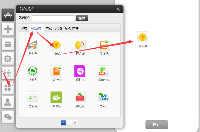 插件微報(bào)名(適用版本手機(jī)營銷版)后臺:可以添加多個報(bào)名活動,自定義報(bào)名表單內(nèi)容,設(shè)定是否需要會員登錄,查看報(bào)名參加人員前臺:插件中心,新增微報(bào)名插件可選擇使用哪個報(bào)名數(shù)據(jù)可設(shè)置報(bào)名界面樣式頁頭部圖片建議尺寸:320px*160px1、依次點(diǎn)擊微信管理-》微信應(yīng)用-》微報(bào)名2、點(diǎn)擊新增報(bào)名活動添加。注意:下拉選項(xiàng)、多選框由|分隔3、點(diǎn)擊參與人員管理參與者的報(bào)名狀態(tài)。4、?從左側(cè)的工具欄插件中,選中微報(bào)名插件后按住左鍵不放,然后把微報(bào)名插件拖拽到您需要的位置。(要使用該插件需要您先在插件中心啟用)?5、選擇數(shù)據(jù)源-》保