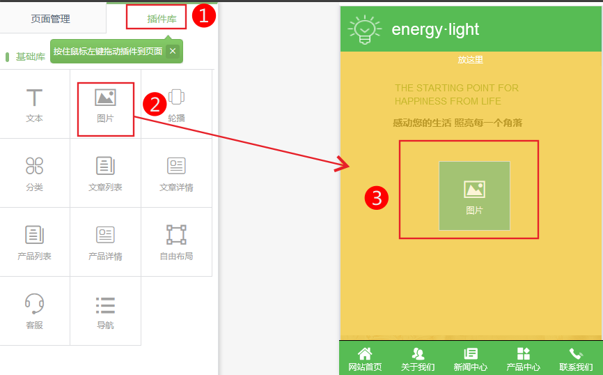 小程序插件-圖片1.依次點(diǎn)擊插件庫--選中“圖片”插件拖拽到您需要的位置。2.配置屬性設(shè)置如:設(shè)置透明度,點(diǎn)擊事件等。3.設(shè)置點(diǎn)擊文本內(nèi)容后的事件,可以是點(diǎn)擊跳轉(zhuǎn)頁面。4、設(shè)置圖片的樣式、可以設(shè)置背景、及邊框。