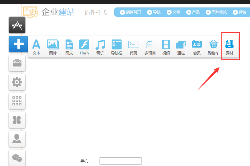 1.在建站前臺(tái),“添加-》選擇“素材”模塊。目前僅支持圖文展示,此功能預(yù)設(shè)了兩種風(fēng)格的編排,用戶可以預(yù)覽或者直接添加到建站中,再具體調(diào)整其中的每一個(gè)模塊。