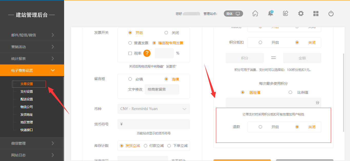 需營(yíng)銷版本及以上在后臺(tái),“電子商務(wù)設(shè)置”-“交易設(shè)置”中,有一個(gè)退款的操作,當(dāng)開(kāi)啟該操作時(shí),在前臺(tái)用戶頁(yè)面可以直接申請(qǐng)退款,后臺(tái)消息提醒中也會(huì)有相應(yīng)的提示,點(diǎn)擊“查看”即可(注:“退款”默認(rèn)為關(guān)閉狀態(tài)),如圖所示:在線支付的訂單才能退款2.手機(jī)版與PC版操作一致,這里不做贅述。已收貨的訂單也可以申請(qǐng)退款點(diǎn)擊查看進(jìn)入訂單詳情即可看到退款按鈕。如圖所示:1.支付后點(diǎn)擊退款余額和積分是否退回支付后,后臺(tái)點(diǎn)擊退款,余額和積分和優(yōu)惠劵是退回的。2020.11.12營(yíng)銷版本(包含小程序)支持訂單退款新增微信原路退回功能1.在