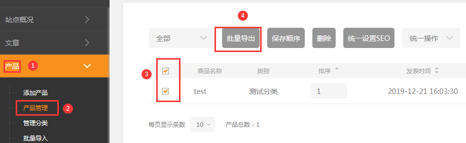 本小節(jié)共包含5點(diǎn)。1、通過(guò)本部分的操作,您可以快速對(duì)某部分商品進(jìn)行簡(jiǎn)單的批量操作。選擇所需要編輯的商品,然后用CSV文件方式導(dǎo)出根據(jù)自己需要對(duì)其中商品進(jìn)行編輯,然后保存上傳編輯后的CSV文件即可注意:CSV文件可以通過(guò)Excel等軟件打開和編輯。(注意csv分隔符選擇制表符.)例如,網(wǎng)站有多個(gè)分類的商品,3C分類下的部分商品需要調(diào)整價(jià)格2、選擇商品,導(dǎo)出CSV文件依次點(diǎn)擊后臺(tái)管理-產(chǎn)品管理-導(dǎo)入/導(dǎo)出-》導(dǎo)出-》本站csv,選擇需要編輯的商品分類3C,點(diǎn)擊導(dǎo)出,選擇CSV文件并下載3、用Excel編輯下載的CSV文件,可以