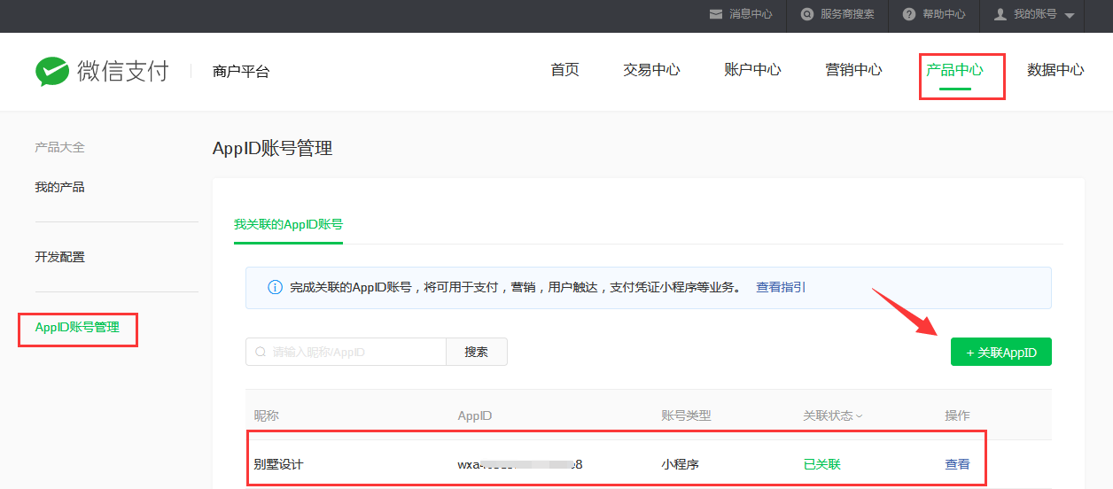 小程序微信支付時提示mch_id和appid不匹配需要檢查小程序申請微信支付功能,是選擇綁定已有的公眾平臺開通的商戶號,還是重新提供資料申請的檢查對應(yīng)的APPID,如果小程序是用的公眾平臺的微信支付功能,那么小程序要認(rèn)證,去申請支付功能,可以選擇綁定微信公眾平臺申請的微信支付。重點(diǎn)檢查appid是否對應(yīng)下邊是的步驟:綁定已有商戶號開通微信支付”是微信支付新推出的使appid快速獲取微信支付能力的新方式,目前這種方式首先應(yīng)用在小程序申請微信支付的流程中。且一個商戶號可同時被綁定在多個小程序中,暫無被綁定次數(shù)限制。step1: