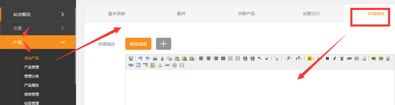 本小節(jié)共包含5點。1、依次點擊文章-》添加文章2、商品應該包括那些內容呢?可能最基本的應該是以下幾點:文章類別:一篇文章必須屬于一個類別,這個便于管理所以可能添加分類往往是第一步的。文章名稱:一篇文章當然也是必須有這篇文章的名稱摘要::簡要的描述您文章的內容詳細介紹:詳細介紹部分,您可以自由發(fā)揮3、下面是一篇簡單的文章在網(wǎng)頁展示4、對應的,看看后臺究竟那些地方需要輸入,注意不同編號的框的匹配:5、當你添加文章以后,你就可以在文章列表里面看到這個文章了