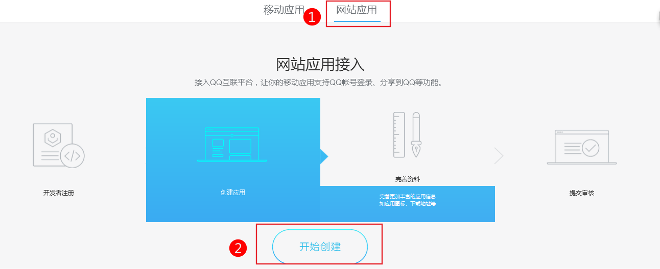 1、申請QQ互聯(lián)1.開發(fā)者注冊1.在QQ互聯(lián)開放平臺首頁http://connect.qq.com/,點擊右上角的“登錄”按鈕,使用QQ帳號登錄。重要提示:開發(fā)者QQ號碼一旦注冊不能變更,建議使用公司公共QQ號碼而不是員工私人號碼注冊,以免遇到員工離職等情況造成不必要的麻煩。2.登錄成功后會跳轉到開發(fā)者注冊頁面,在注冊頁面需要提交公司或個人的基本資料。2.網(wǎng)站接入申請網(wǎng)站接入前,需首先進行申請,獲得對應的appid與appkey,以保證后續(xù)流程中可正確對網(wǎng)站與用戶進行驗證與授權。2.1添加網(wǎng)站開發(fā)者注冊成功后,會跳轉到“管理中心”頁面。點擊
