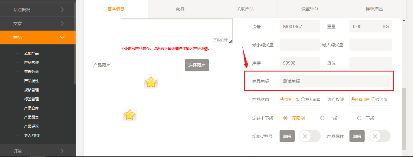 1.在建站后臺,“產(chǎn)品”-“產(chǎn)品管理”中添加或者編輯產(chǎn)品,新增了商品角標字段,如圖所示:2.在建站中,拖出“產(chǎn)品列表”插件,在樣式設(shè)置中開啟角標,即可看到角標并設(shè)置樣式。五.新增暢言單點登錄功能(pc手機全版本)