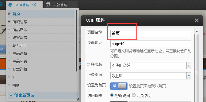 如操作更換首頁在頁面管理中點(diǎn)擊屬性設(shè)置頁面名稱即可。