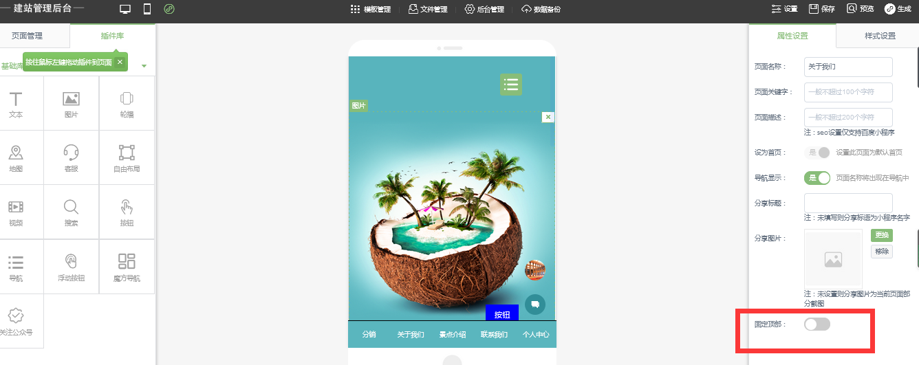 在小程序編輯器中,小程序頁面新增了首行插件凍結(jié)設(shè)置項,點(diǎn)擊選項“是”設(shè)置范圍內(nèi)的插件凍結(jié)在頂部,如下圖所示:開啟后可以設(shè)置頂部固定區(qū)別高度注:如果頂部區(qū)域插件高度高于最小高度以實際高度為準(zhǔn)然后可以新加模塊到固定區(qū)域,以前加的模塊是不能拖拽到固定區(qū)域的訪問時設(shè)置的區(qū)域會一直固定在最上方