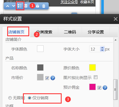 在分銷店鋪插件點(diǎn)擊樣式設(shè)置-》店鋪首頁-》勾選僅分銷商顯示傭金