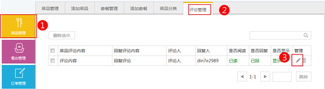 評論是顧客購買菜品后對菜品的一種反饋,好的評論對菜品的持續(xù)銷售會有極大的的幫助。 本小節(jié)共包含4點。1、通過本部分的操作,您可以順利的設置與管理評論信息。 1、已經支付并且訂單狀態(tài)是已完成了的訂單用戶才能評論 1.依次點擊用戶中心-》我的訂單-》查看已發(fā)貨訂單 2、評論設置與評論管理 評論內容顯示在菜品詳細頁,店主可以決定評論的是否顯示及回復。 1.依次點擊菜品管理-》評論管理。 2.店主可以決定評論的是否顯示及回復