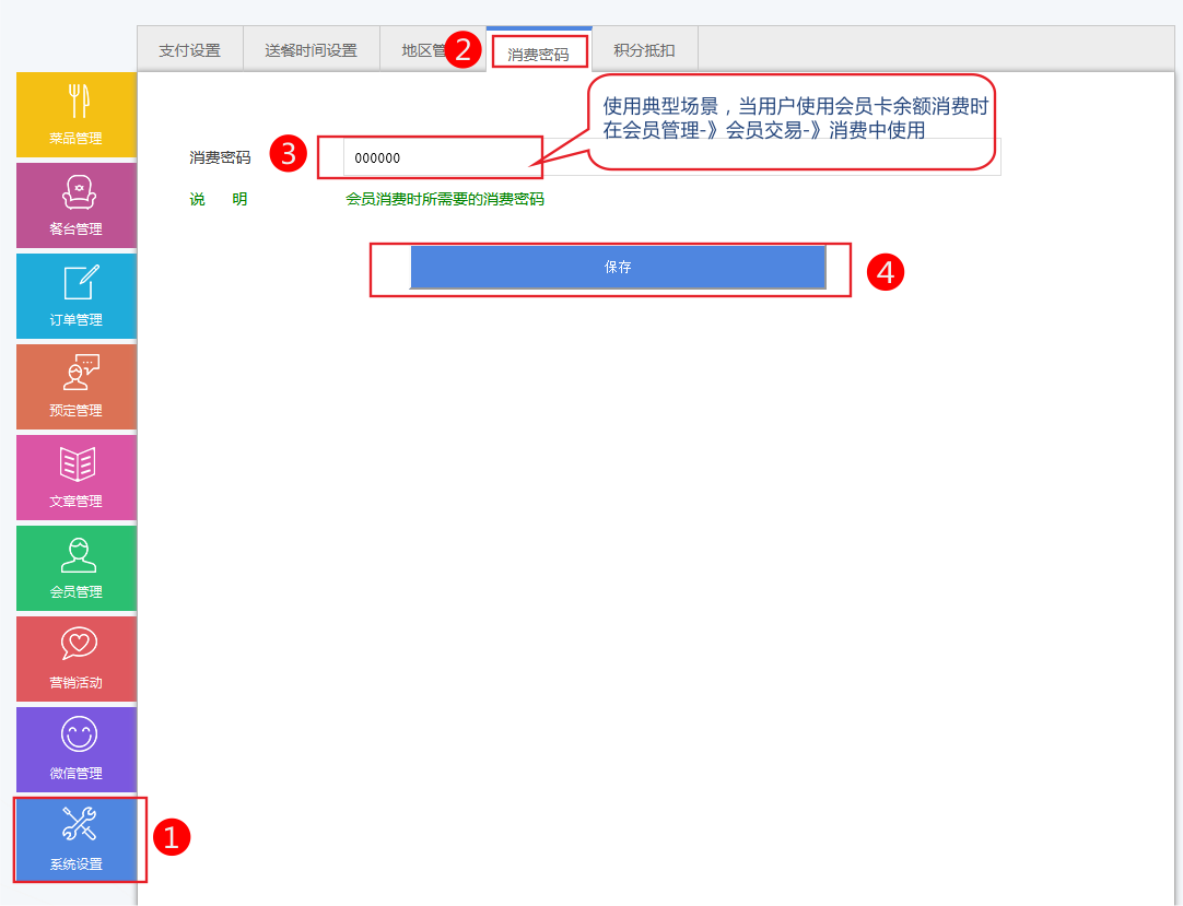 消費密碼在管理員扣除會員會員卡上余額時使用。 如:在會員管理-》會員交易-》消費中使用